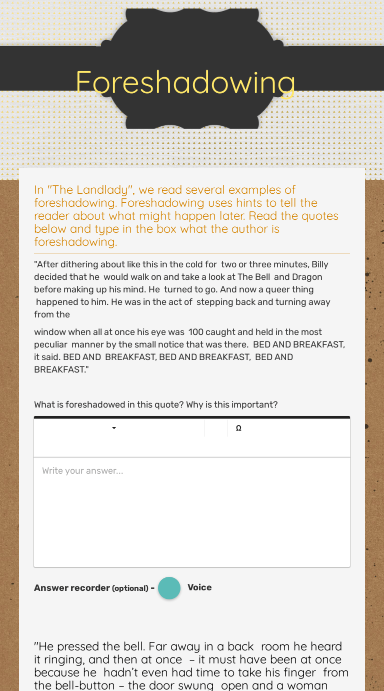 The landlady answers the door before he lets go of the buzzer; . Use quizlet's activities and games to make studying easy, effective and fun! The landlady is a short story by roald dahl. Ork and homework are presented throughout the worksheets. Pdf,ppt,images:the landlady questions and answers.